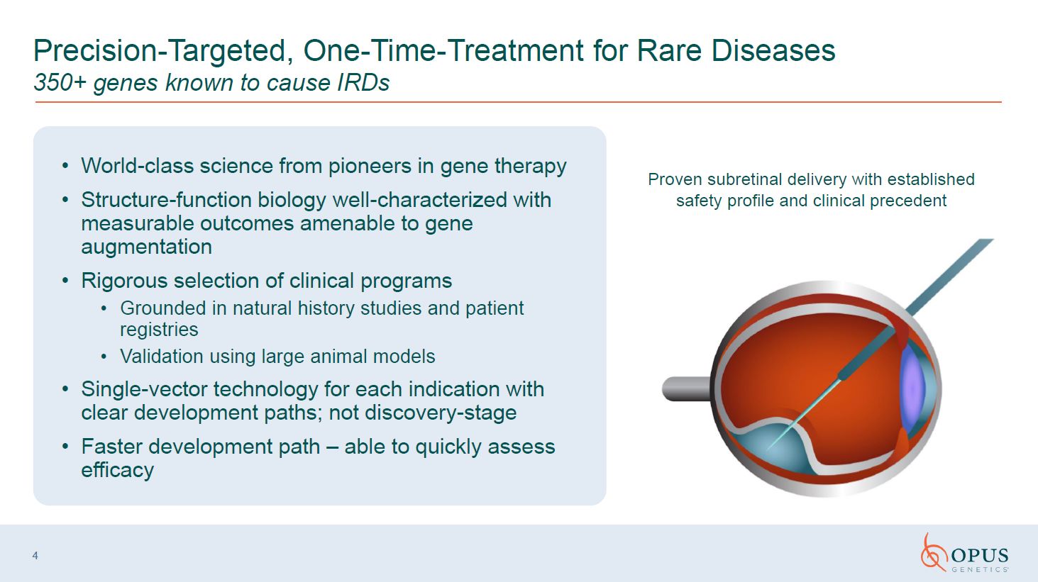 4 Precision-Targeted, One-Time-Treatment for Rare Diseases 350+ genes known to