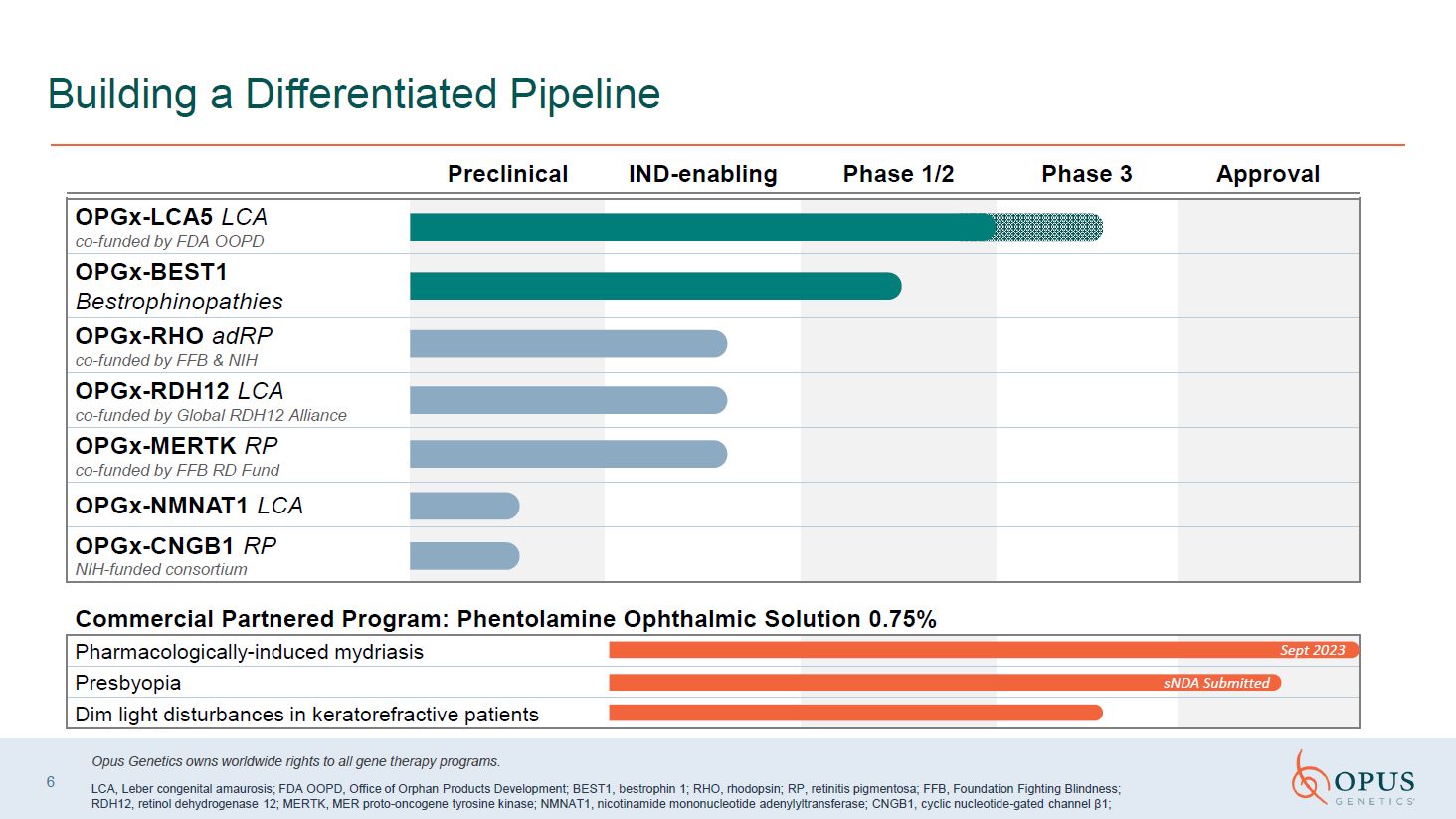 Building a Differentiated Pipeline OPGx-LCA5 LCA co-funded by FDA