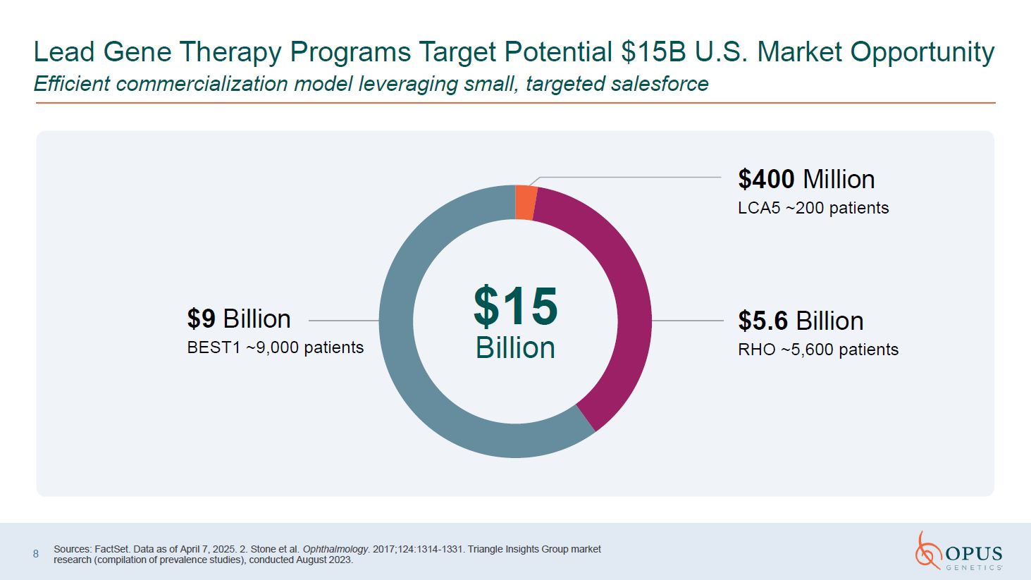 Lead Gene Therapy Programs Target Potential $15B U.S. Market Opportunity Efficient commercialization model leveraging small, targeted salesforce