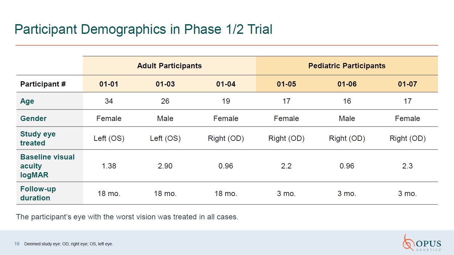 Participant Demographics in Phase 1/2 Trial Deemed study eye: OD, right eye;