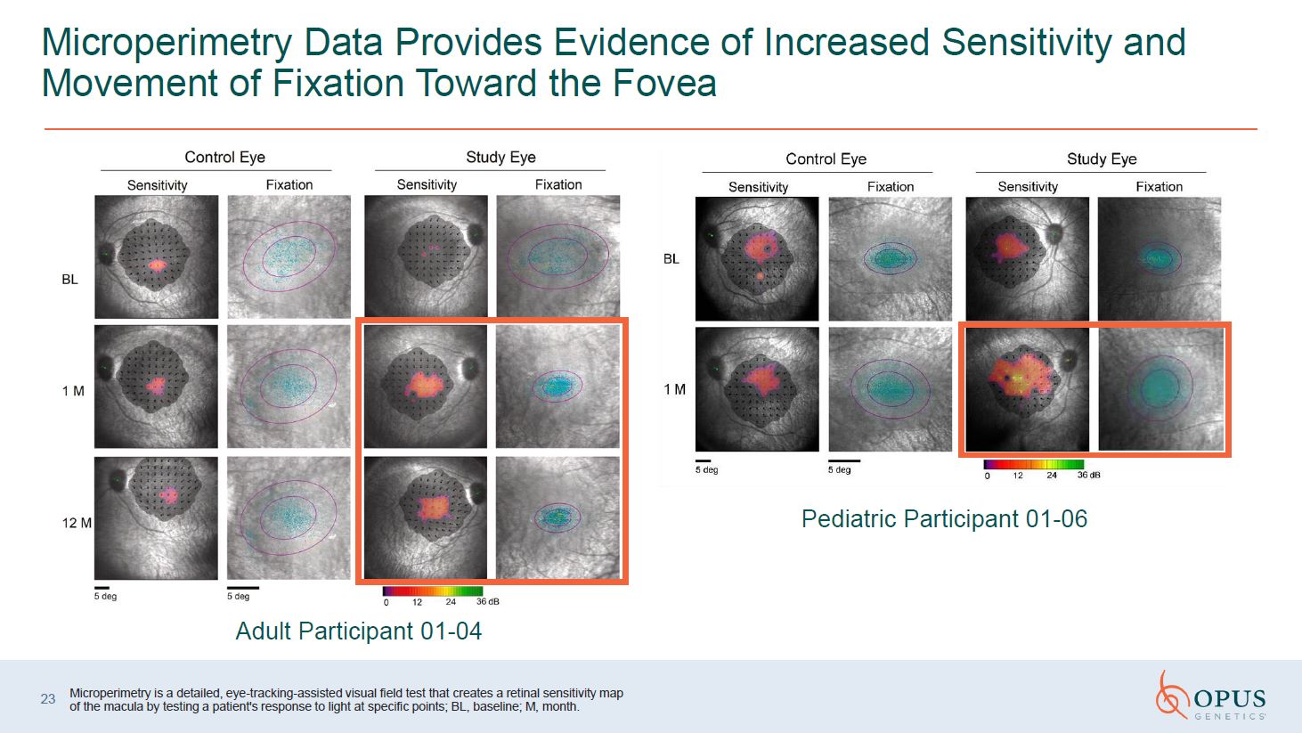 Fixation Toward the Fovea Adult Participant 01-04 Pediatric Participant 01-06 Microperimetry is a detailed, eye-tracking-assisted visual field test that creates a retinal sensitivity map of the macula by testing a patient's response to