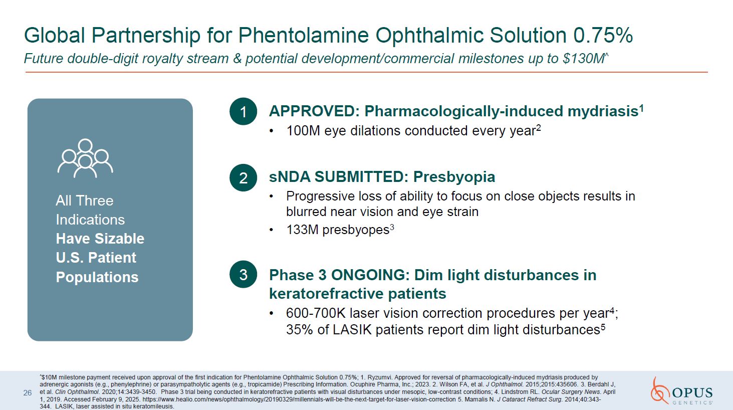 2026 Two additional gene therapy programs enter clinical testing Phentolamine Ophthalmic Solution 0.75%: potential presbyopia approval by year-end 2026 Phentolamine: Phase 3 topline results in dim light disturbances in H1 2026